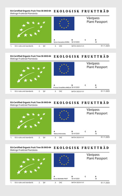 We are an EU-certified nursery that strives for organic growing conditions, for organic fruit trees specializing in organic and climate-resistant fruit trees. In our range we have: apples, pears, cherries and plums which are: resistant to diseases, drought and cold. The trees are fast growing and bear a lot of fruit and can be up to 100 years old.